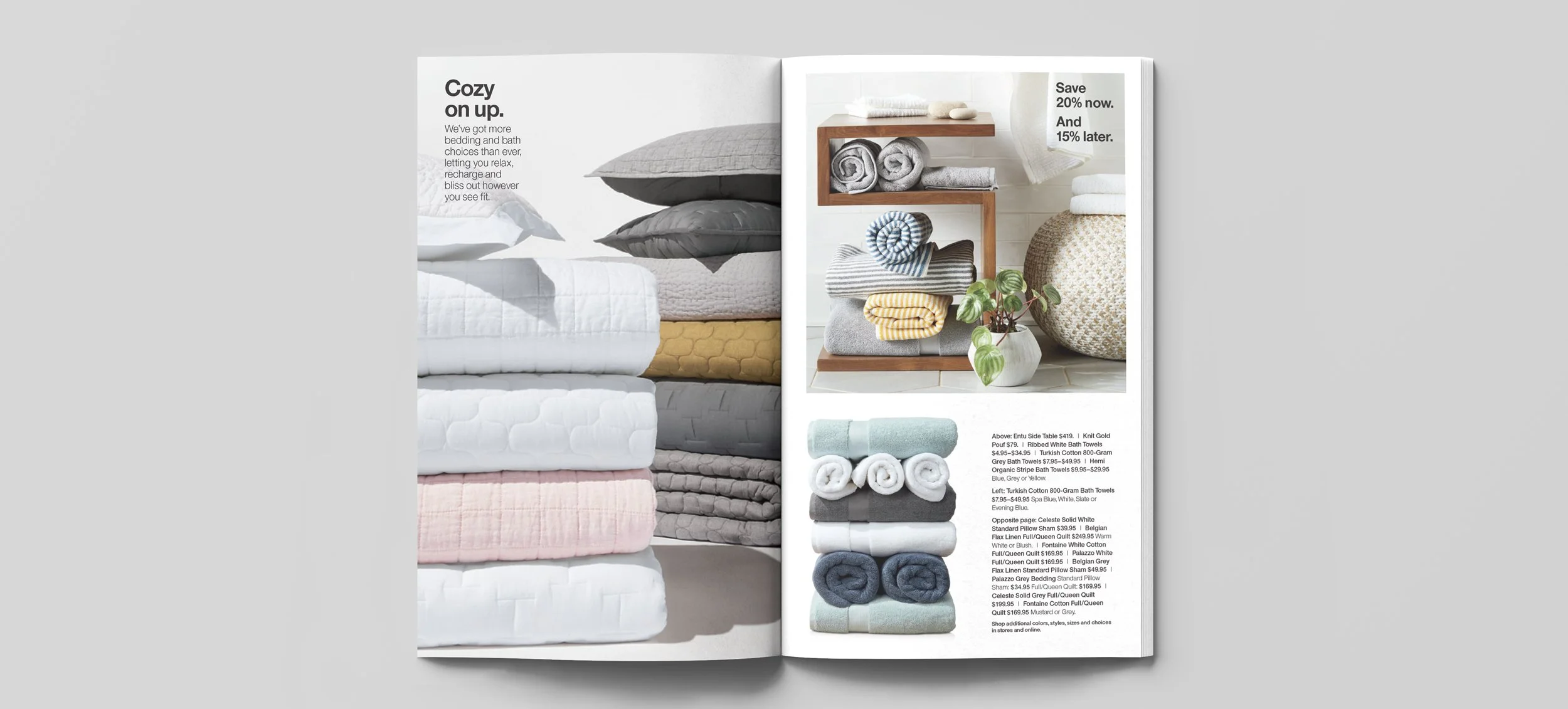 In 2019, I had the opportunity to design Crate & Barrel’s spring new movers catalog. This was a 24 page mailer sent to anyone that had recently moved, it usually contained a couple of discount cards. My job was to assess all the recently shot spring photography and compile a book that featured key areas for new movers such as dining, kitchen, bedroom and living room.